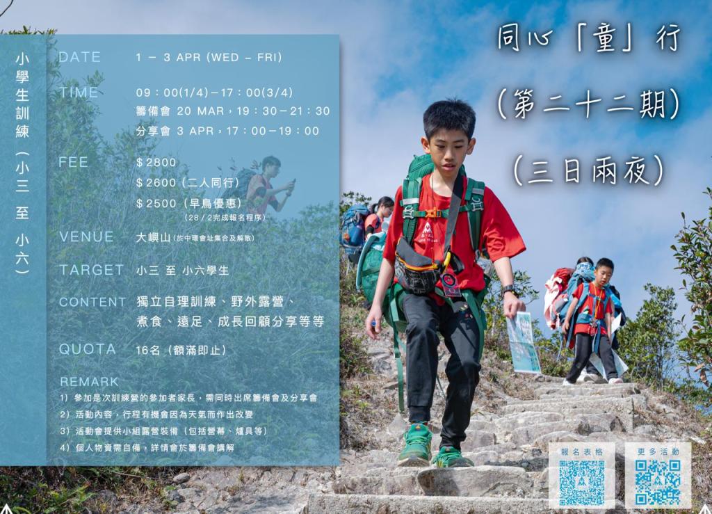 「同行」是森.成長活動當中的核心理念:一個人走得快,但想走得遠需要的是同伴。同心「童」行是機構的Signature訓練風格,藉著小組野外旅程體驗,讓孩子脫離依賴環境,於合作中探索,成為自己成長中的主角。過程中他們經歷成長掙扎,合作中的突破,讓汗水磨練孩子們的意志,透過導師鼓勵及具進程性的訓練,小組會獲取共同成功體驗,成為未來人生的正能量。